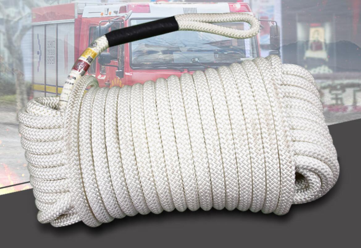 采用芳綸凱芙拉纖維原絲編織而成,具有極高的強度。其纖維重量比拉伸是鋼絲的5-6倍,模量為鋼絲或玻璃纖維絲的2-3倍、高強尼龍的7.倍,公認的極強力纖維之一,作為消防安全繩,高強度,更加安全可靠。