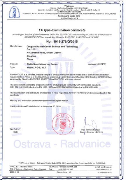 探洞繩(靜力繩)CE證書(shū)