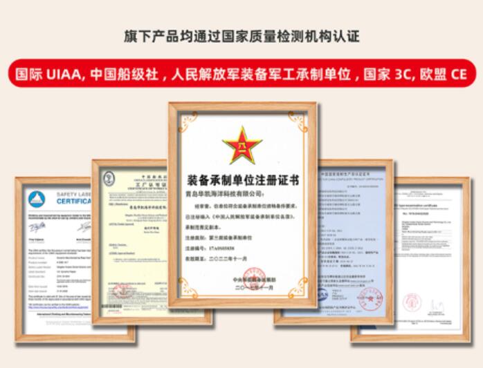 檢驗報告,3C認證,中國船級社CSS,國際UIAA,歐盟CE,軍工承制單位。