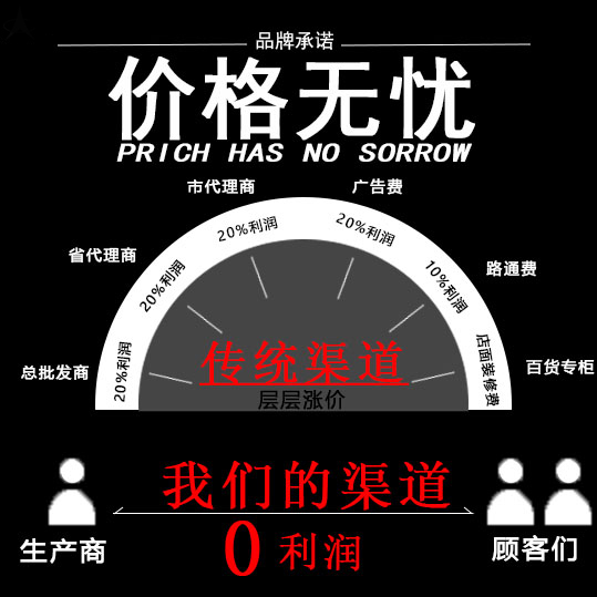 傳統渠道:總批發商——省級代理商——市級代理商——廣告費——路通費——店面裝修費。