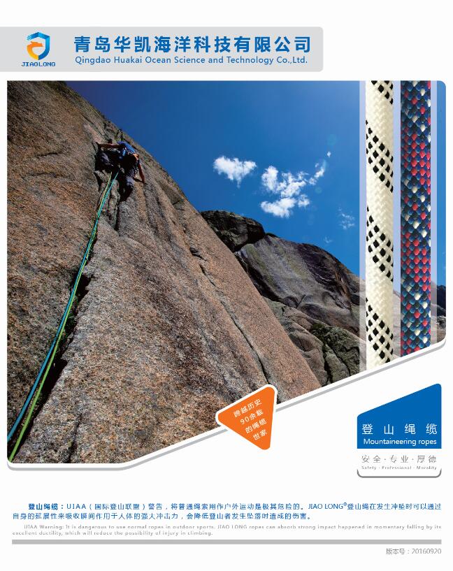 這種編織繩既保留了尼龍繩的優點—質量輕,柔韌度強,又去掉了搓制尼龍繩的僵硬、摩擦力大、彈性過大等缺點。編織繩是目前唯一獲得國際山岳聯盟(Union Internationale Des Associations D Alpinisme,簡稱UIAA)以及歐洲標準委員會(Cornite Europeen de Normalisation,簡稱CEN)檢驗合格的登山繩。