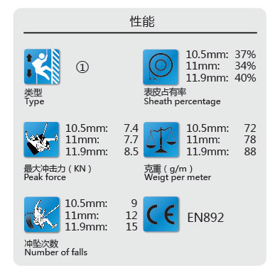 在日常訓練以及救援過程中,環境極其惡劣,生命隨時面臨著危險的考驗,因此所用繩索安全性極其重要,符臺歐盟標準的動力繩EN892、靜力繩EN1891、輔助繩EN564,除了負荷強度要求之外,更重視其專業性能與功能要求,為使用者提供更好的保護良好的操控力,獨特的繩芯除處理技術以及繩體后處理技術賦予繩索卓越可靠的性能。更長的使用壽命以及耐磨特性,滿足日常訓練及救援的特別需求。