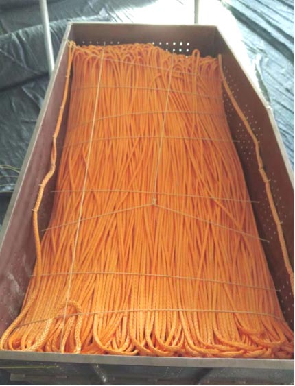從2011年至今,青島華凱海洋科技有限公司(青島海麗雅集團(tuán))承擔(dān)著為我國(guó)自主研制的“蛟龍?zhí)枴陛d人潛水器配套研發(fā)特種繩纜,其中最具代表性的是9000米應(yīng)急浮標(biāo)纜,這條繩子是“蛟龍?zhí)枴弊詈蟮囊粭l“保命繩”,具有超高強(qiáng)度(直徑4mm,破斷力大于2.5噸)、輕質(zhì)(密度為0.97g/cm3,可漂浮于水)、低延伸率、耐腐蝕等優(yōu)點(diǎn)。
